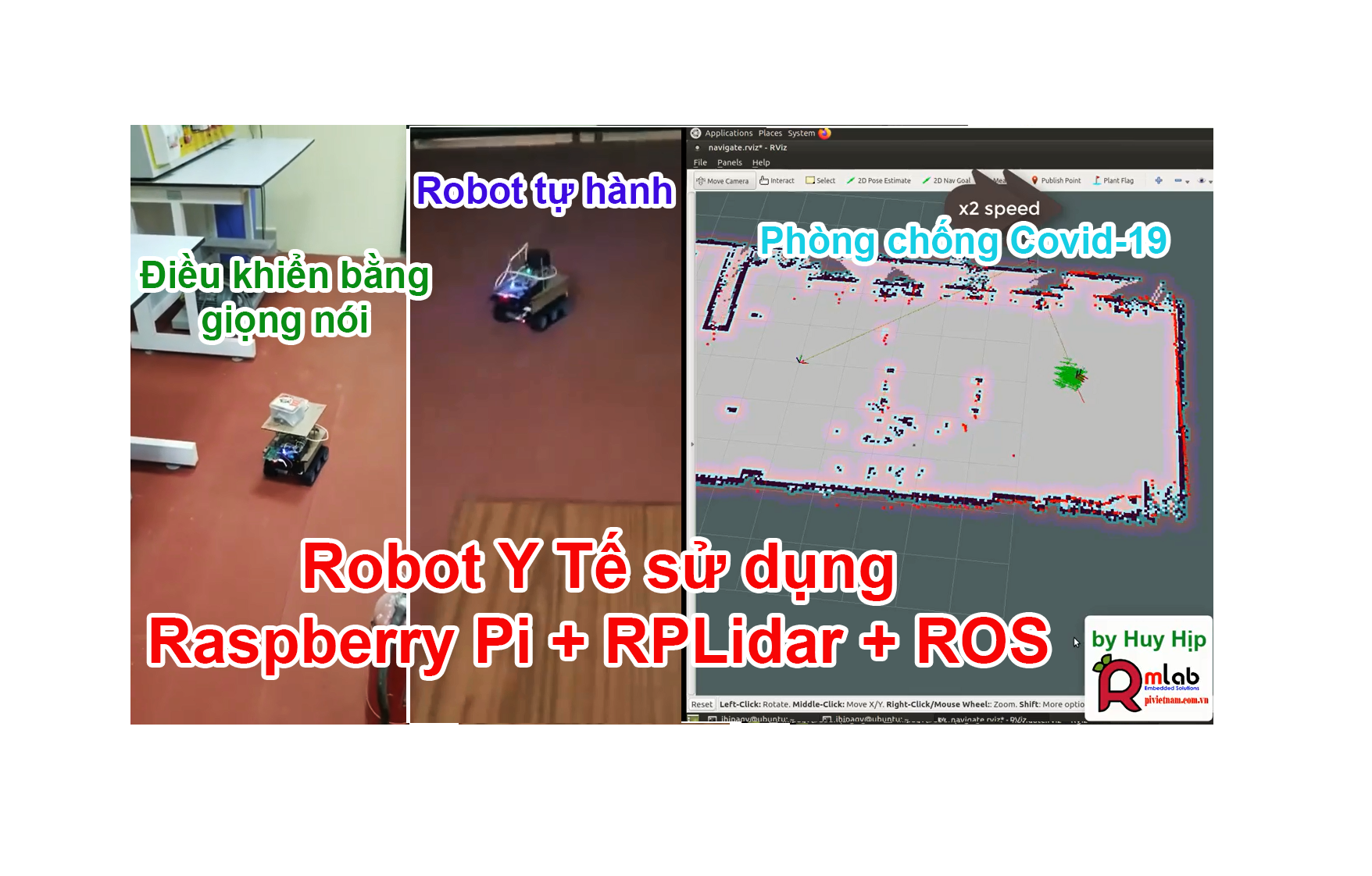 Video thú vị mà bạn Huy Hiệp đã sử dụng Raspberry Pi + RPLidar và ROS trong lập trình điều khiển Robot, nền tảng ứng dụng Robot trong Y tế.
